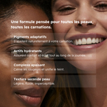 Notre formule contient un mélange exclusif d’actifs hydratants, d’antioxydants et de pigments qui s’adaptent à votre carnation. Sans parabènes, sans silicones lourds, hypoallergénique et non comédogène.