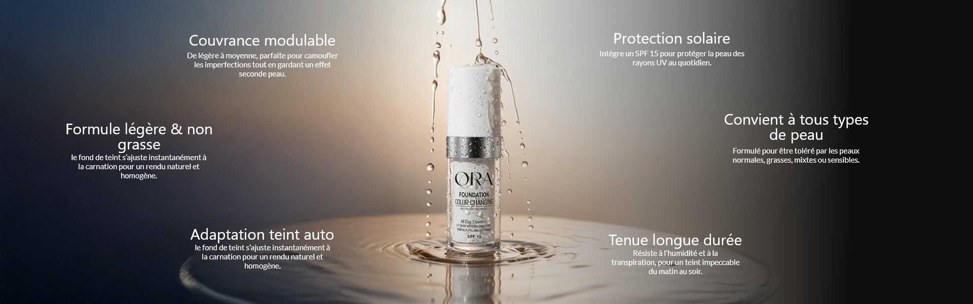 ORA ne se contente pas de maquiller, il prend soin de votre peau tout en sublimant votre teint. Sa formule innovante offre des solutions concrètes pour répondre aux besoins de toutes les carnations et de tous les types de peau.